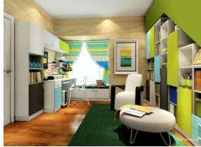 清新自然的韩式田园风格设计,采用白色板材,搭配淡黄色的墙,清新饰品的衬托下,清新自然。直角书桌一体化设计,满足了书房工作的基本要求,同时也搞定客卧休息的需求,充分体现定制家具的优势。