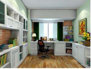 这款设计的整个空间以象牙白为主色调,采用洁净的面板,丰富而又独特的面板工艺设计。书房透露出大自然气息。展示柜与书柜的搭配,高低吊柜设计错落有致。整个空间更显得舒适休闲。