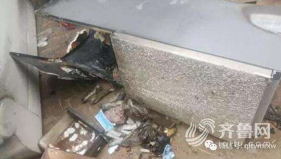 可家里的家具、家电就没那么幸运了。大火过后,空调、电视、净水器等家用电器几乎全都被烧毁,屋里的墙体和地面上更是一片狼藉。家人怀疑,躺在院子里的这个冰箱就是这场火灾的罪魁祸首。