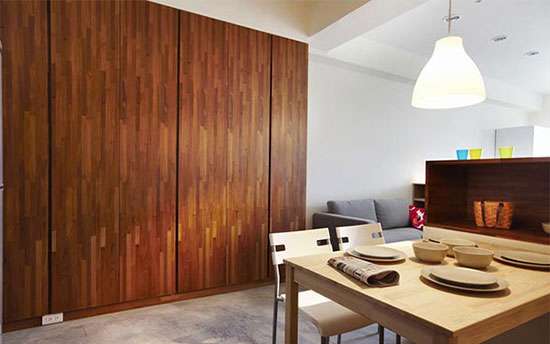 度假使用的空间,考量入屋主不需要过多的收纳,因此设计大型柜体,可将杂物一次性整理收纳。