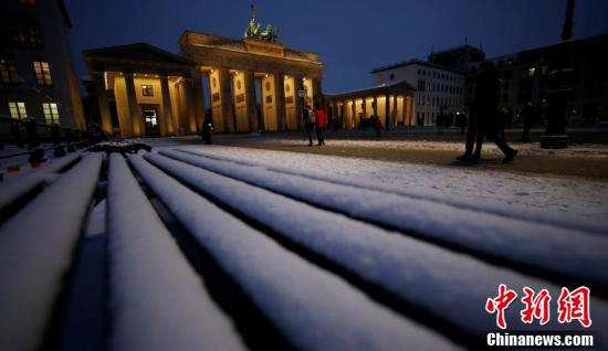 1月8日,德国柏林勃兰登堡门被白雪覆盖。