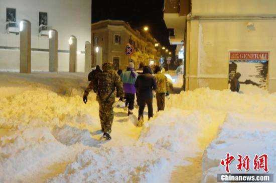 意大利南部城市被大雪覆盖,意大利民众在南部城市的大雪中出行,民众在雪中拍照。