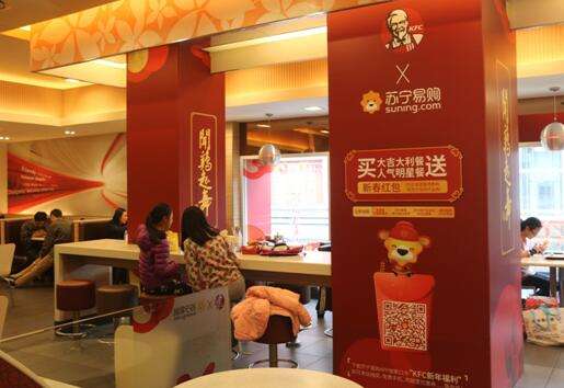 据悉,这家主题餐厅是双方基于2017鸡年新春活动所做的结合。春节期间,肯德基推出“闻鸡起舞”的IP形象,而苏宁易购小狮子吉祥物变身“小狮鸡”,两个年轻化的品牌形象相结合更受用户喜爱,同时也吸引了双方强大的粉丝群体。