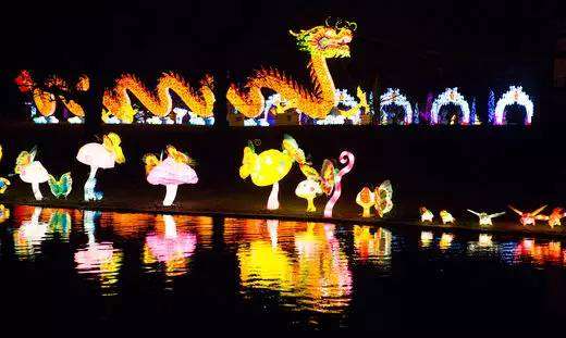 为庆祝中国春节的到来,这座原本极具英国特色的古典花园,被装饰上彩灯,俨然成了奇幻天堂。