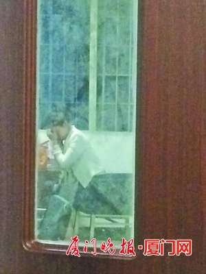 昨晚10点多,透过调解室的玻璃门,记者看到吕某英独自坐在里面,她手托着额头,不停用手机打电话。晚上11点左右,她被民警带到二楼办公区域做笔录。直到凌晨3点多记者离开时,她还在派出所。