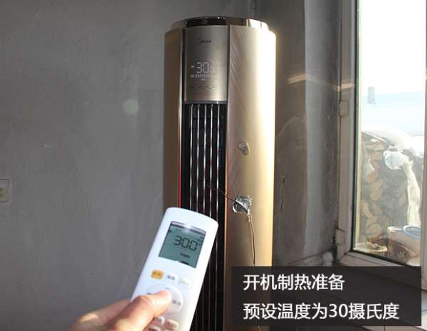 打开空调,模式调为制热,温度设为30摄氏度。值得一提的是,作为一款智能空调,美的智能王搭载的天使眼技术,即使暂时找不到遥控器,一个手势也能让空调开始工作。