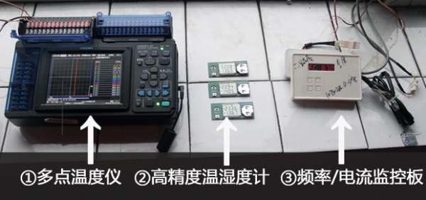 ①多点温度计:分别记录压缩机温度以及室内温度和出风口温度变化。在测试完成后我们会把各温度进行记录,并制作曲线图方便大家了解各测试区域温度变化情况。
