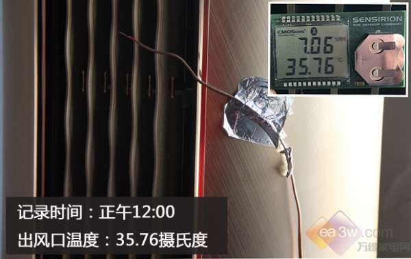 在后面的测试过程中,美的智能王空调一直在稳定工作中。在下午14:10结束温度监测时,空调出风口温度已经达到了46摄氏度,室内温度也提升至零上12℃,体感温度相对较为舒适。