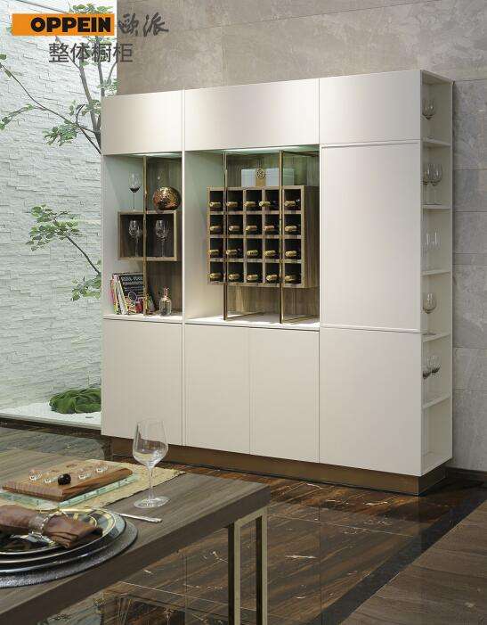 设计亮点:与别的橱柜有所不同,欧派流光溢彩橱柜还特意设计了酒柜,依然是白色简约之风,与厨房相得益彰,如此,烹饪,就餐,小酌浑然一体,组成了多姿多彩的居家生活。