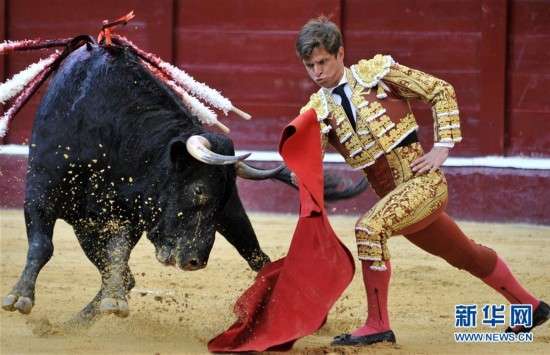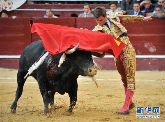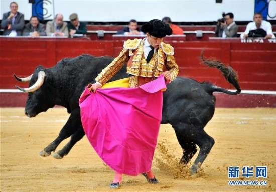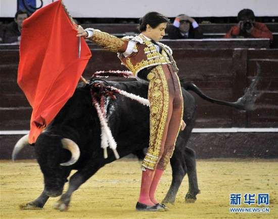 1月22日,在哥伦比亚波哥大,西班牙斗牛士洛佩斯进行斗牛表演。哥伦比亚斗牛节在波哥大圣玛丽亚斗牛场举行。 新华社/西霸