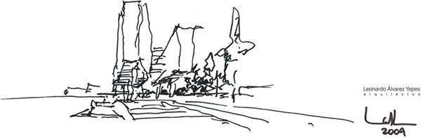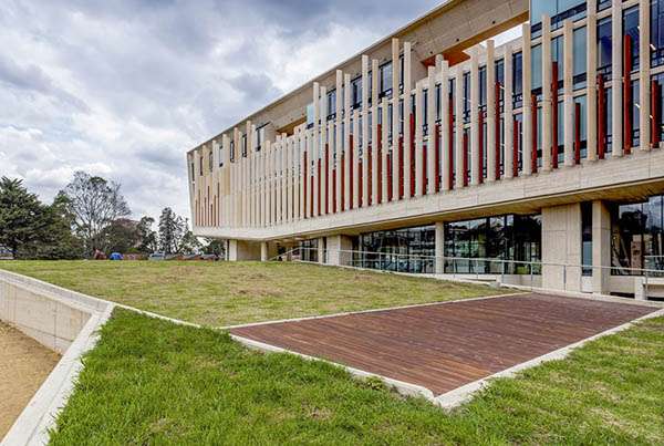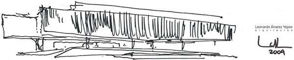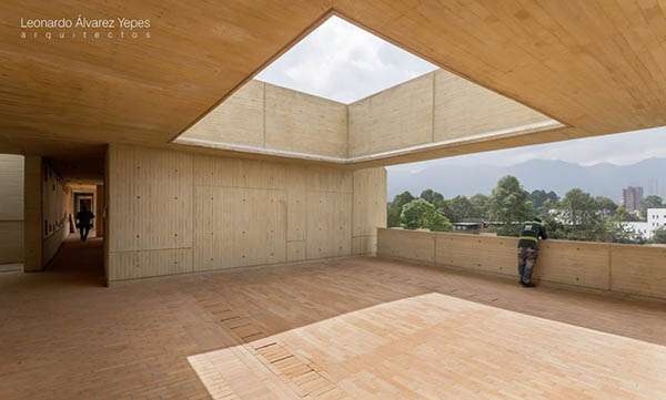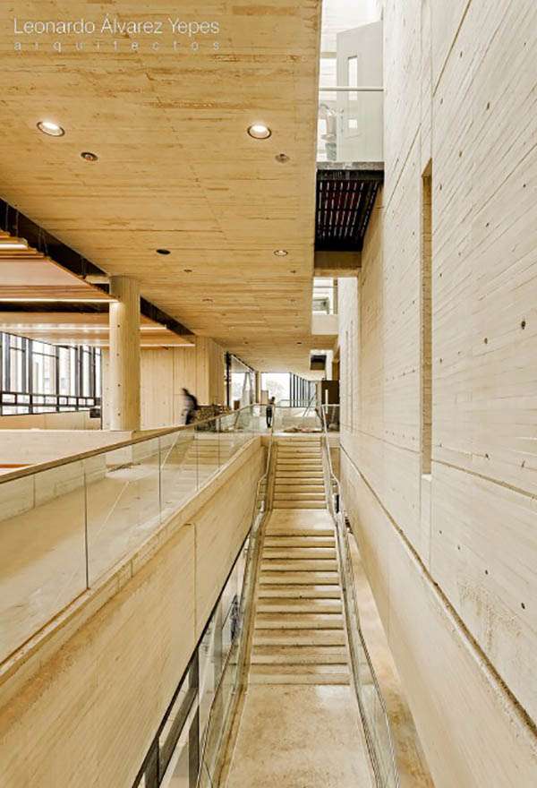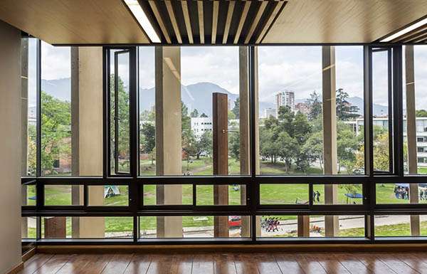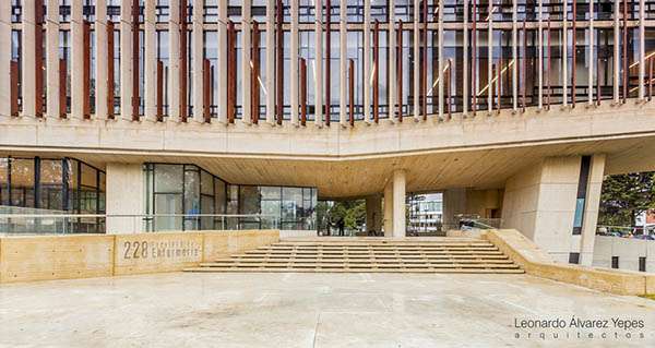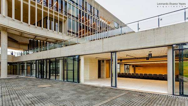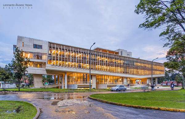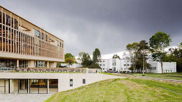 建筑垂直于法律与政治科学学院建筑的核心区域,其外部空间的边界与组织呼应着周边的建筑格局,以保持相互间视觉的连通性。建筑的长边平行于校园内一条连接起波哥大两条主干道与校园中心区域的主要步行道。