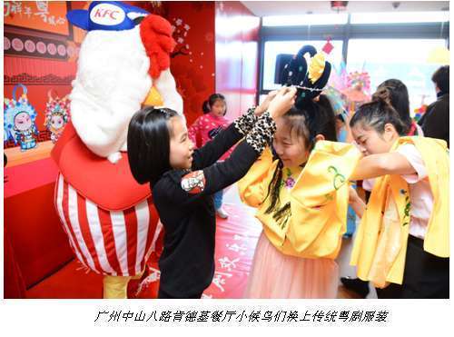这天是由共青团广州市委员会主办的“关爱外来工子女集中行动日”。肯德基作为联合倡议发起单位携手广州市文化馆、市非物质文化遗产保护中心,肯德基邀请小候鸟们来到百鸡百吉主题餐厅,为他们打造了一场别具特色的新春粤剧盛会。餐厅现场打造的迷你花市,地道的粤剧表演、南国醒狮贺岁,还有奇奇化身“财神”派利是……来自广州大南路小学的粤剧文化小使者,给“小候鸟”小伙伴们带来了粤剧和粤语“数白榄”节目,粤剧老师还讲解了粤剧历史文化和广府文化。这浓浓的广式传统年味,让“小候鸟”和他们的父母们,在团圆欢乐气氛中拉近了彼此的距离,也深入地了解了这座生活了多年的城市。