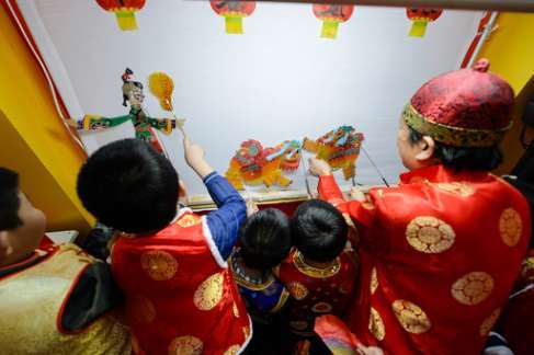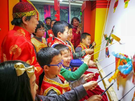 皮影艺术家关维颖老师指导小候鸟表演皮影