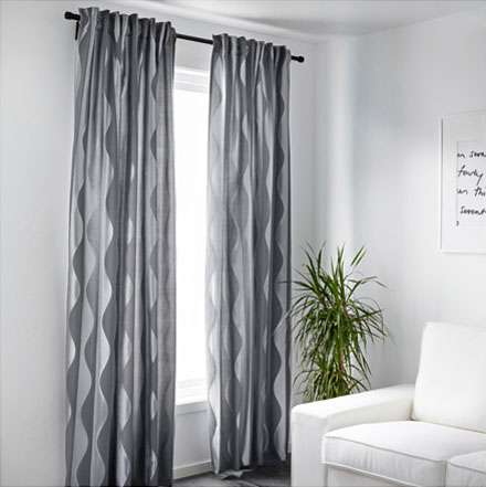 灰色窗帘具有良好的遮光性,也能够保护室内隐私。波浪纹的效果富有流动性,同时具有哑光和亮泽的双面图案效果,可翻面使用。