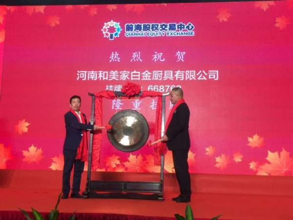 企业观察报讯(记者 徐强)11月24日上午,河南和美家白金厨具有限公司在深圳前海股权交易中心成功挂牌,股权代码:668762,河南和美家白金厨具有限公司董事长吴建辉、总经理金雪云等众多领导和嘉宾及新闻媒体代表共同出席挂牌仪式。