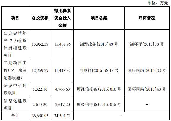 此次募集资金能在两个方面加快企业营收进程。一方面,通过年产7万套整体厨柜建设项目、三期项目工程以及研发中心建设项目,在产品产能、样式等方面提高性能;另一方面,通过信息化的建设,加大对产品营销、网点建设、后台信息系统的投入等方面,提高企业的工作效率。