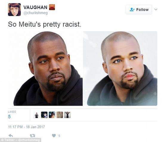 5、美图秀秀被指责种族歧视,不管黑白皮肤全部P成黄皮肤