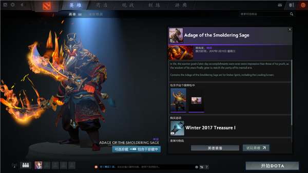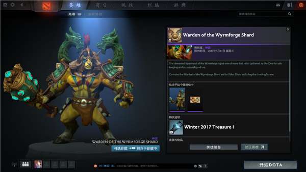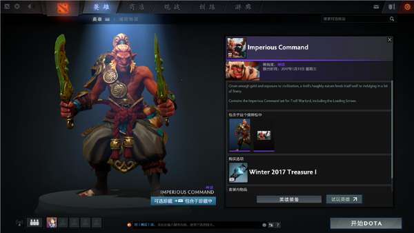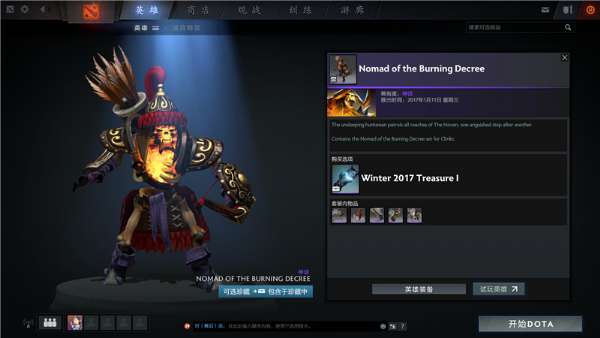 推出2017冬季珍藏I,各种中国风套装上线,现在进入客户端可直接购买2017勇士令状,仅售4800刀币。着手任务,拓展并挑战自己的Dota技艺;赢下预测,获得额外的勇士积分;完成目标的同时达成相应的成就,而这一切还将提升勇士等级,解锁一系列勇士令状赛季的奖励和珍藏。请前往Dota 2客户端预览2017冬季勇士令状。