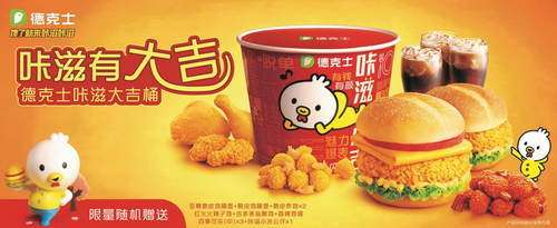 无论是咔滋小吉的形象,还是与消费者的互动经验和时机,再也没有比鸡年更适合的了。今年,消费者将在德克士门店、灯箱、海报等宣传点看到更多咔滋小吉的身影,也能直接购买这个可爱的实物公仔。德克士还将对消费者传达新年祝福的任务也交给了咔滋小吉,4款玩偶被命名为:四季如意、小吉送吉,满满中国年的味道。