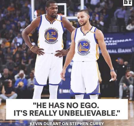 杜兰特彻底被库里拜服了,称库里最让人不可思议的是颠覆性的得分能力和领导球队能力,而是如此现象级的球员居然一点都不自负,库里则称他的心里住着上帝,自己打篮球就是要扮演上帝一样拯救球队。