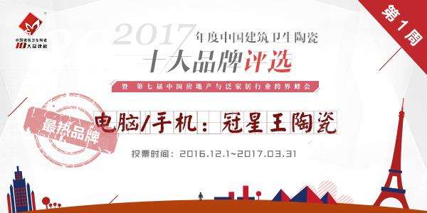 以倾力动员参与本次评选网络投票的冠星王陶瓷,在本周电脑手机端位居“陶瓷十大品牌”榜单的首位。