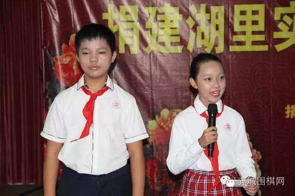致辞过后,厦门市政协副主席陈永裕和聂卫平共同为湖里实验小学希望围棋教室授牌,湖里区区委书记林建与洛阳双龙棋局董事长吴亚伟向湖里实验小学捐赠了棋具,湖里区教育局副局长吴雪慧与山西人民出版社总编姚军向湖里实验小学捐赠了围棋书籍。