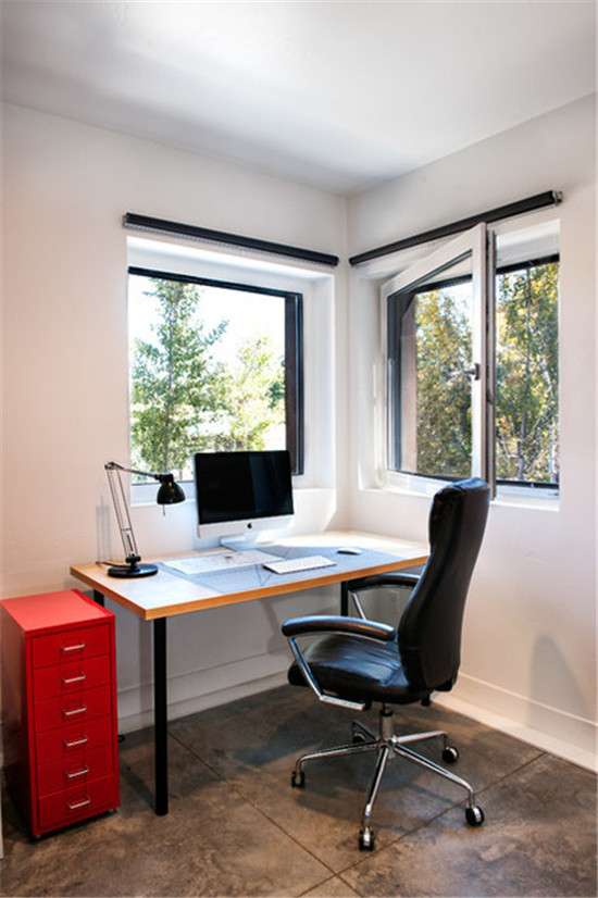 书房设计在靠窗户的位置上,面朝室外的葱郁风景和清新和风。