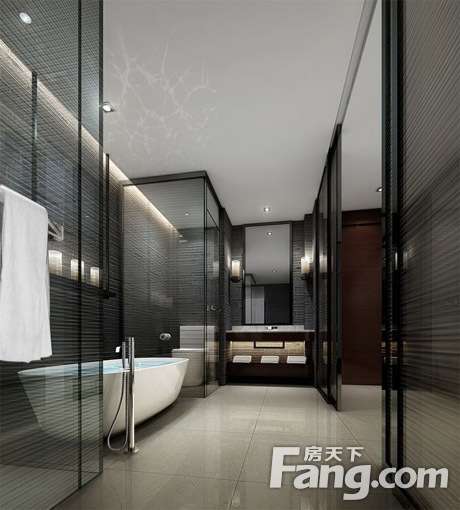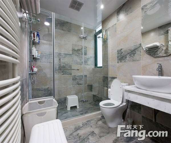 淋浴区,这样其余空间就能够保持干爽啦!现代卫生间隔断门经常使用玻璃哦,因为不会阻挡淋浴区的采光,而且这样的