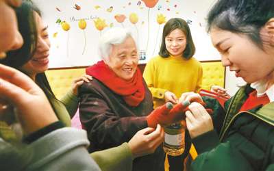 浙江平陽縣應春勇黨員服務隊春節期間來到敬老院看望慰問老人,送上新春祝福。