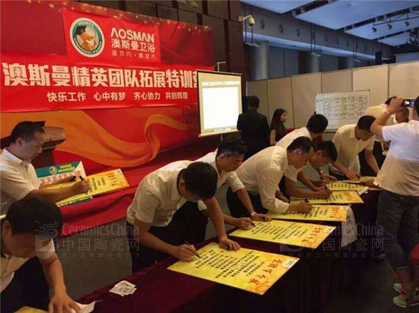 10月9日,澳斯曼卫浴在瓷海国际商务中心5楼会议厅举行澳斯曼精英团队拓展特训营,澳斯曼总经理韩圆林、营销副总经理刘实琴、市场总监陈健朝等多位领导与商学院的老师团队、澳斯曼营销中心全体员工一起,以“快乐工作·心中有梦·齐心协力·共创辉煌”为思想核心,以打造一支良好沟通、快速高效、团结一致的狼性团队为目,进行为时一天的理论和实操相结合的专项培训。