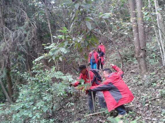 ▲考察队员穿梭在山川之间,只为遍寻野生薯莨。