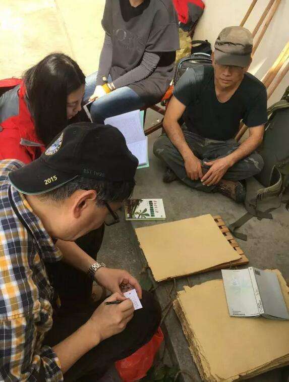 ▲华南农业大学崔大方教授带领考察队员进行标本采集。