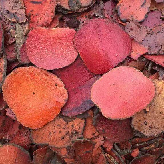 ▲薯莨切片,不同生长年限和环境下的薯莨切片呈现不同的颜色。