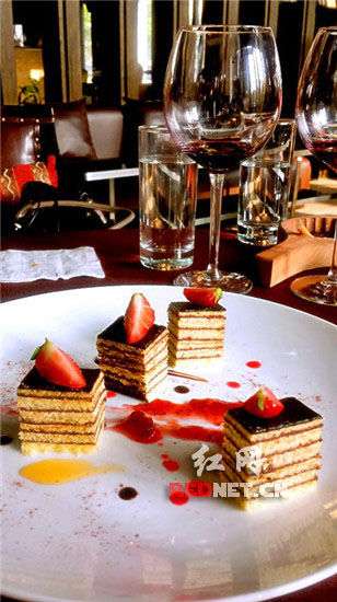 “歌剧”蛋糕。草莓、巧克力酱,奶油,戚风蛋糕的层层重叠,别致的名字和意境,享受美食的同时仿佛与歌剧有了若有似无的隔空交流。