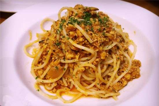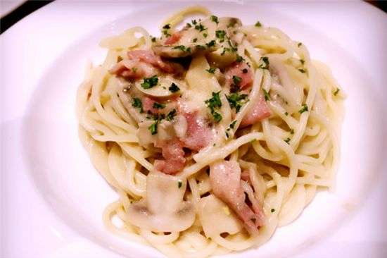 意大利面可以说是西餐品种中最接近中国人饮食习惯菜品,分别品尝了番茄、鸡肉酱、培根蘑菇奶油三种意大利面。番茄的从其鲜艳的色泽上就引诱出食欲,意面中番茄味很浓,酸酸QQ的口感个人很喜欢。鸡肉酱中鸡肉的分量还挺足,深合我这个无肉不欢的属性,加上其特有的酱汁,搭配起来也别有风味。培根蘑菇奶油这样的混合应该是偏西方饮食的了,蘑菇味道鲜美、细腻软滑,但是不喜培根的淡淡的烟熏。简言之,研磨时光的意面可能不是最好吃的意面,但却是性价比最高、最亲民的意面。