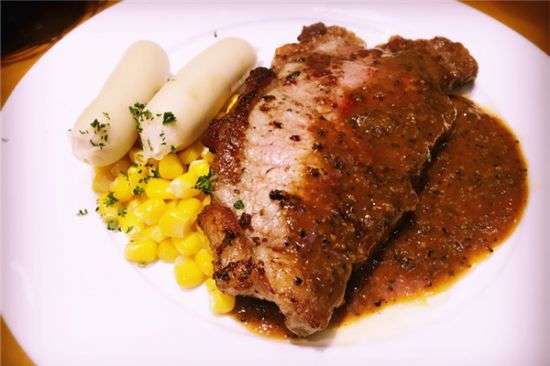 搜刮通篇菜单,最贵餐品不过38,虽然价格便宜,可在食材的选择上却一点不含糊,黑椒口味牛排是牛排中的经典,精选牛里脊肉,经过秘制黑椒腌料腌制,成品出来,恰到好处的鲜辣与鲜嫩口感相碰撞,激起舌尖无比美妙的味觉享受。鱼排的口感很滑爽,肉质无刺且多汁。蒜耳面包、披萨、草莓华夫饼也是推荐单品。