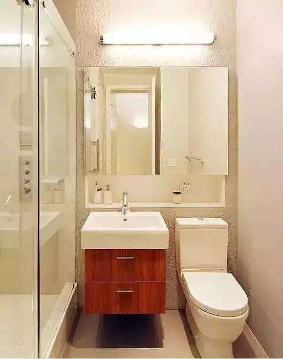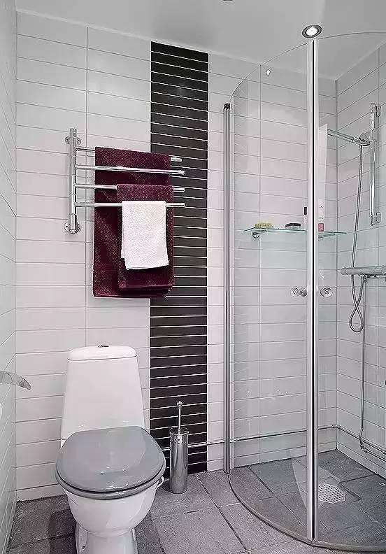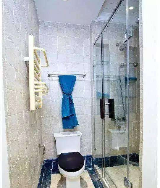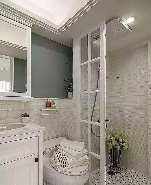 如果浴柜和马桶的体积比较小巧,也可以做长方形的浴房。