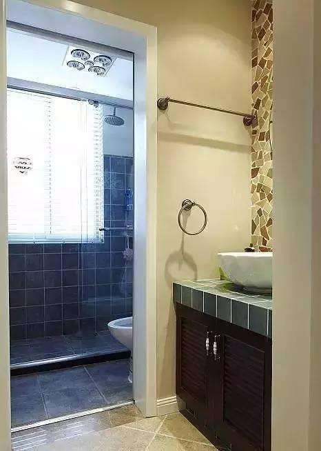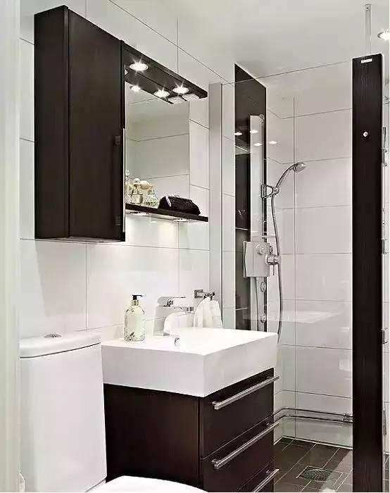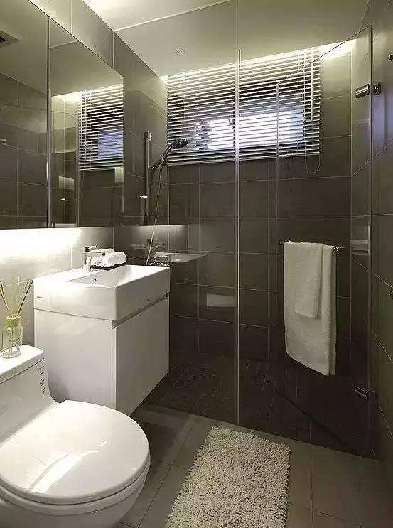 要是喜欢深色,可以在卫生间里小面积使用。比如浴柜、边框,也能提升卫生间的逼格。