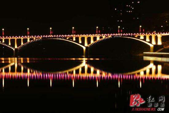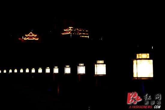 夜幕降临,各种彩灯如鲜花纷纷绽放,亮化灯景成为新邵县一道道靓丽的风景线。资江河畔,五颜六色的彩灯在河水的映照下闪闪发光。