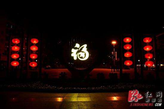 红网新邵县分站2月8日讯(分站记者 杨卫军 通讯员 毕文忠)金鸡报晓万物新,欢乐祥和幸福城。2017年新春夜晚,走在湖南省新邵县的大街小巷,各种造型的霓虹灯、高高悬挂的红灯笼和象征吉祥的中国结,伴着扑面而来的浓浓年味,将整座城市装扮得缤纷多彩。