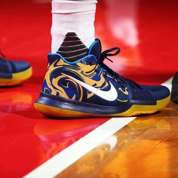 这款球鞋鞋面以蓝色为主,并搭配黄色的花纹,有种中国式图腾的视觉感,黄色外底也与其相呼应。相当好看!