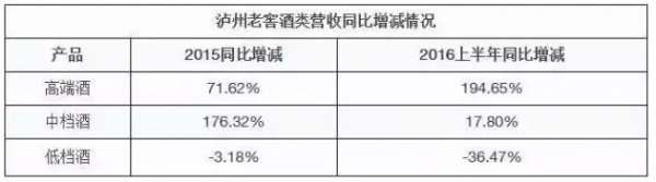 高档酒国窖1573目前已经完成全年的任务,2016年报表收入有望达到30亿元以上;中档酒特曲专营公司收入有望达到20亿元,窖龄酒专营公司收入有望实现15亿元;低档酒头曲和二曲共计完成15亿元。