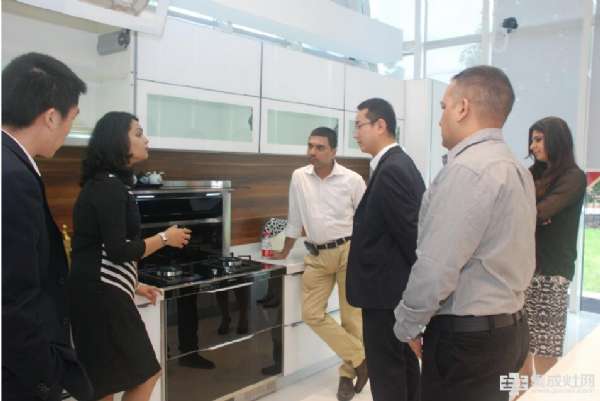 在亿田工作人员的讲解下,海福乐高管团队对中国厨电第一馆——亿田科技馆表示赞叹,对馆内展出的亿田产品,尤其是集成灶的外观和性能高度认可,有望达成长期战略合作伙伴关系。