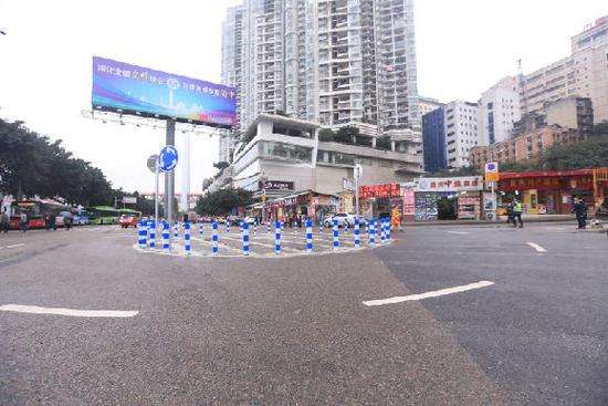 记者在朝天门九码头处看到,原九码头区域的T形交叉口已改为环道形式,交巡警在环道内侧设置了警示柱,防止社会车辆于环道内停车。另外,在长滨路人行横道中部增加了警示柱,防止车辆在人行横道处调头。