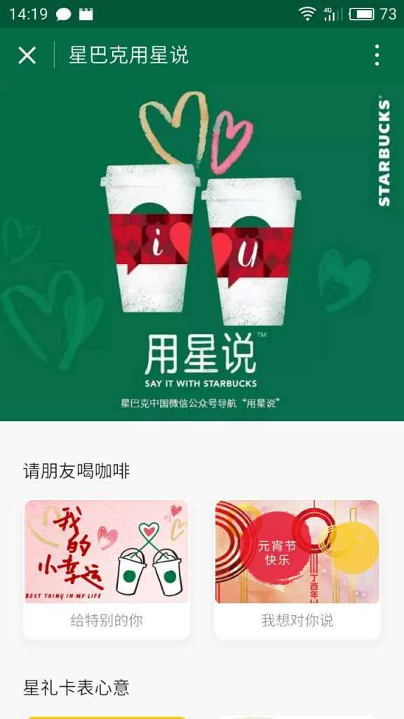 2017年伊始,腾讯与星巴克与腾讯在微信上合作推出了全新的社交送礼功能“用星说“。用户可以通过这个功能给自己的朋友送上一杯咖啡。这个图文一经推出获得了10万+以上的阅读量。用户是这样评论这个功能的。