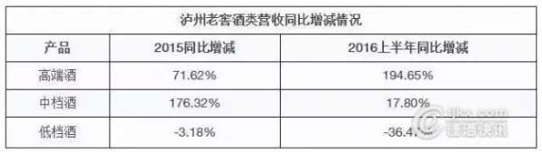 高档酒国窖1573目前已经完成全年的任务,2016年报表收入有望达到30亿元以上;中档酒特曲专营公司收入有望达到20亿元,窖龄酒专营公司收入有望实现15亿元;低档酒头曲和二曲共计完成15亿元。