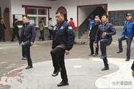 张宏民身穿休闲服,一只脚落地,另一只脚抬起弯曲,表情严肃认真,和荧屏上的样子十分不一样。