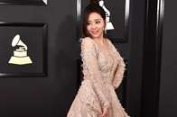张靓颖现身格莱美红毯 深V秀乳沟美艳迷人