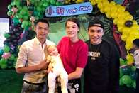 林丹夫妇为儿子办百日宴 开心与友人合影