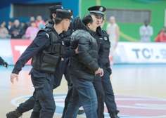 昨晚的CBA赛场,江苏同曦副董事长对比赛的进程不满进场要抢走裁判的球,最后被警方带走。